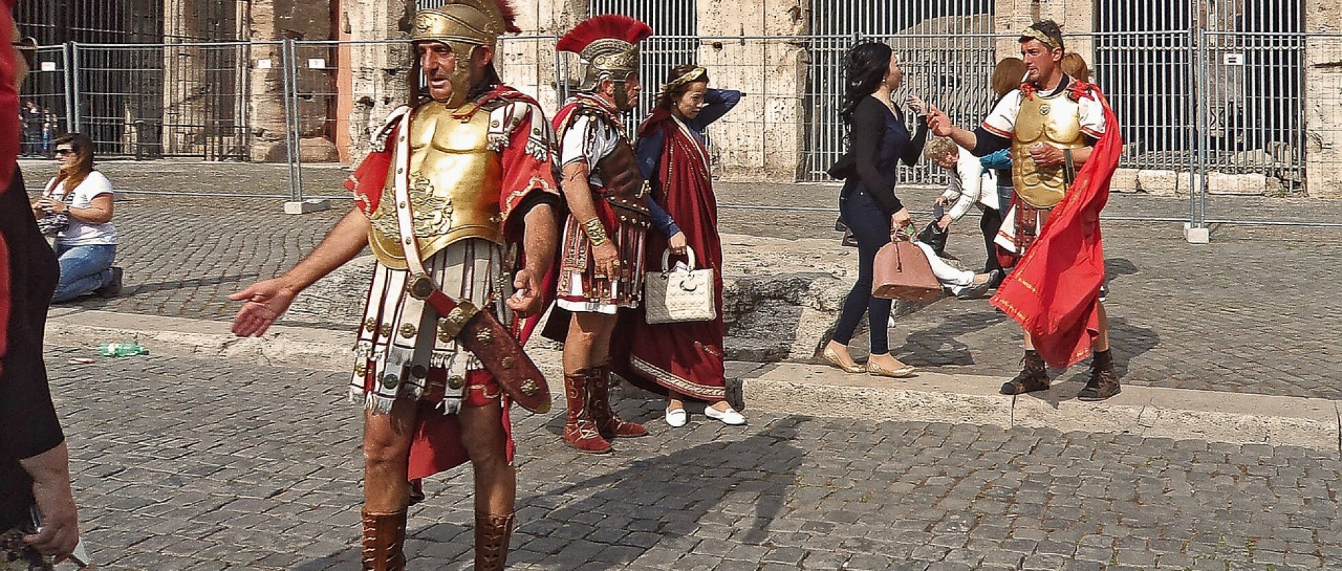 Questi "centurioni" vestiti in abiti romani possono sembrare attraenti per una foto ricordo, ma spesso cercano (in alcuni casi addirittura pretendono) di ottenere compensi esagerati.